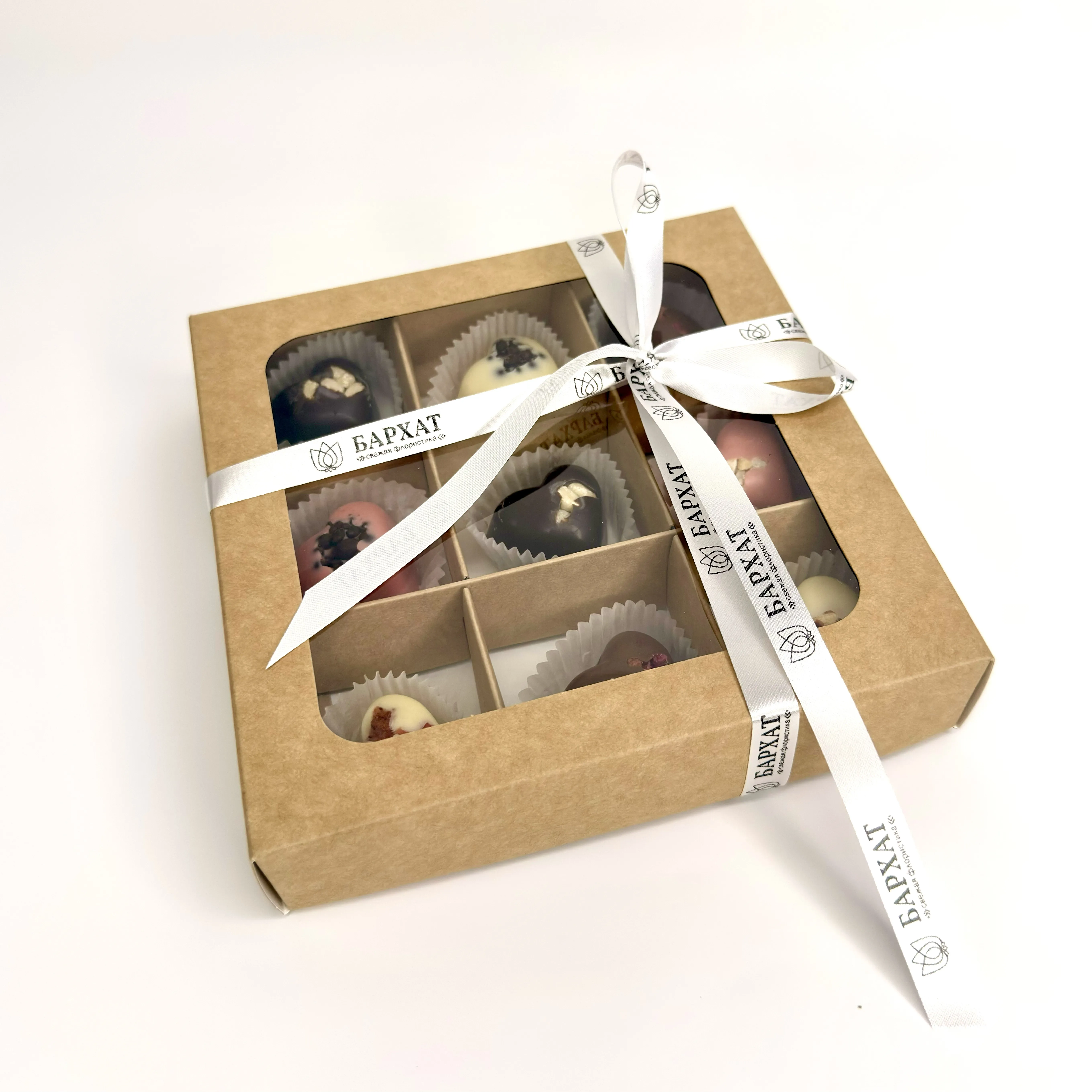 Мы собираем клубничные букеты по весу, а не по штукам. Количество, форма и размер ягод могут отличаться — ведь каждая ягода уникальна.
