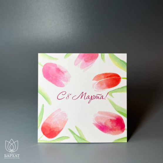Мини-открытка С 8 марта с тюльпанами