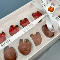 Мы собираем клубничные букеты по весу, а не по штукам. Количество, форма и размер ягод могут отличаться — ведь каждая ягода уникальна.