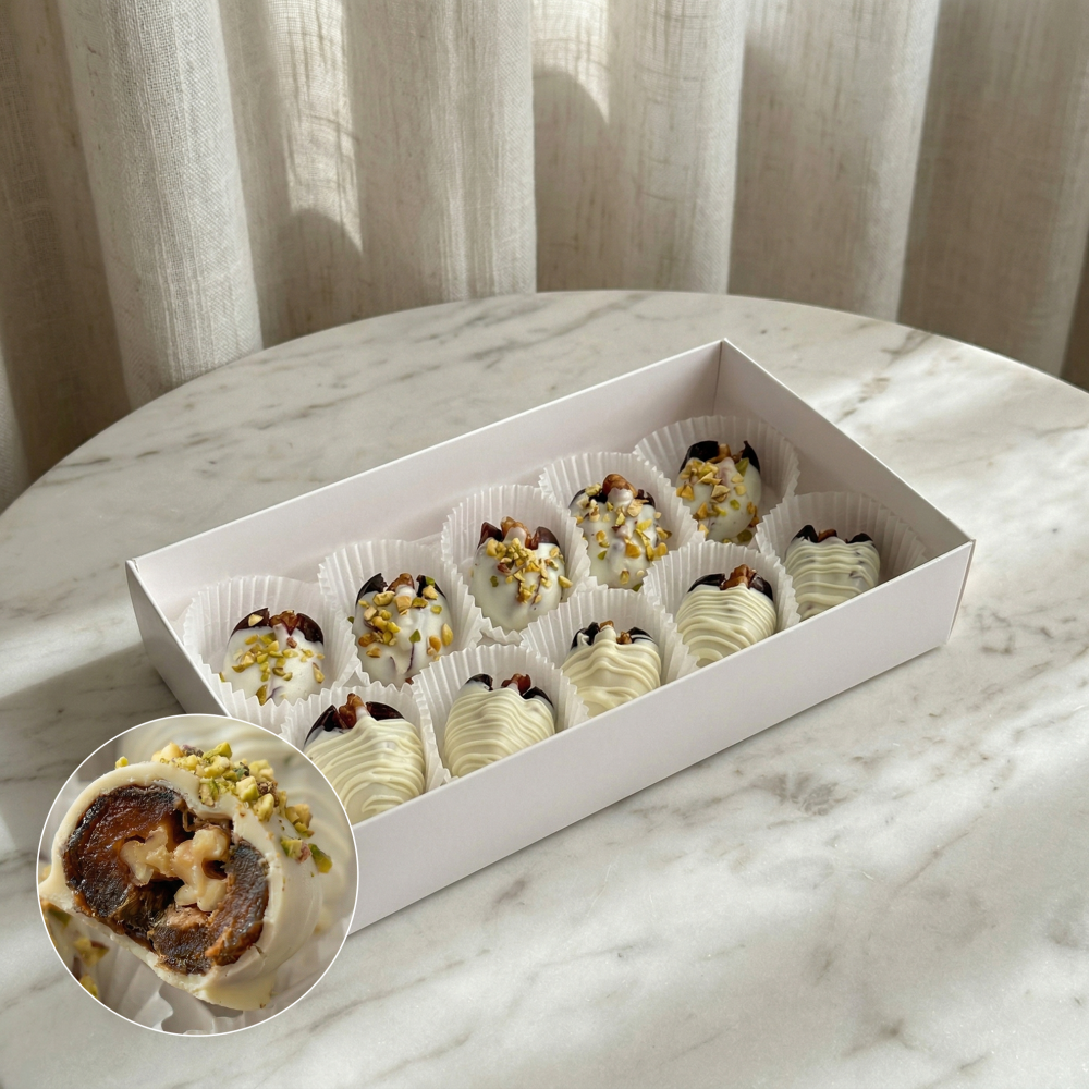 НОВИНКА! Восточная роскошь нового десерта в белом исполнении: медовые финики, укутанные в фирменный шоколадный купаж.
