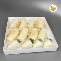 Мы собираем клубничные букеты по весу, а не по штукам. Количество, форма и размер ягод могут отличаться — ведь каждая ягода уникальна.