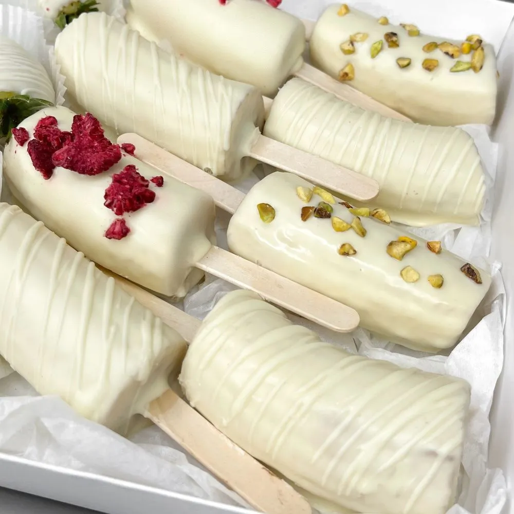 Мы собираем клубничные букеты по весу, а не по штукам. Количество, форма и размер ягод могут отличаться — ведь каждая ягода уникальна.