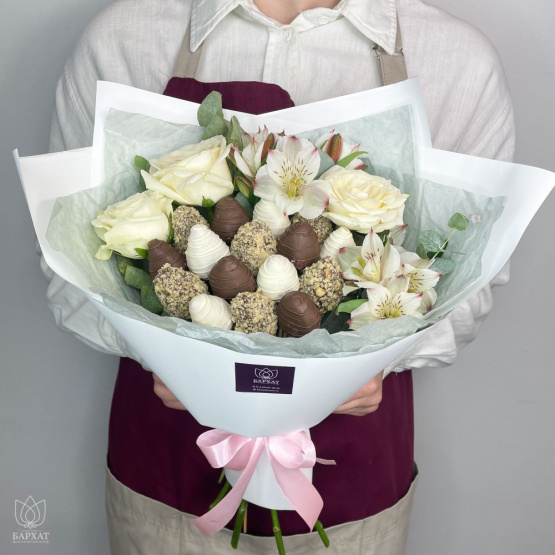 • Клубнично-цветочные букеты