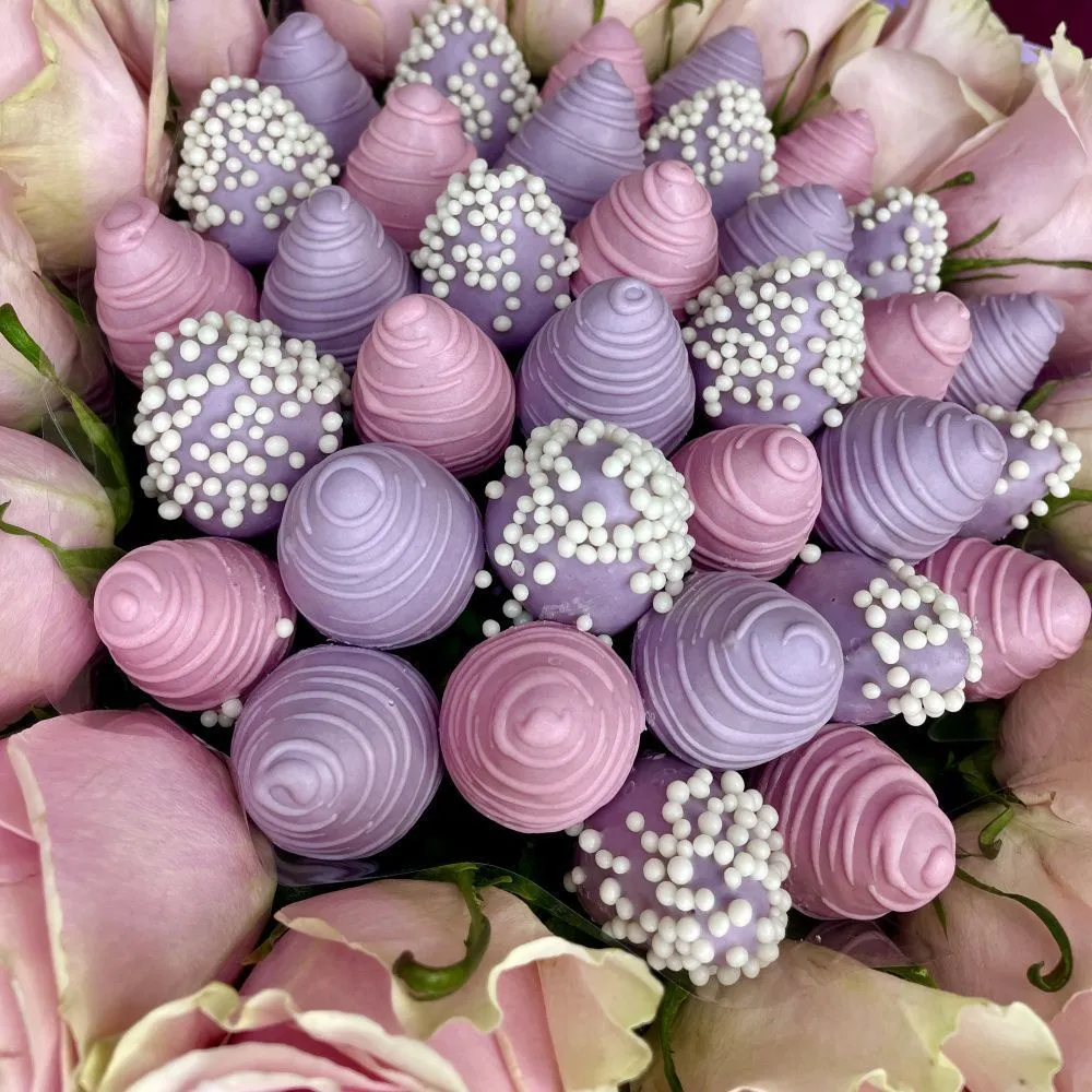 Мы собираем клубничные букеты по весу, а не по штукам. Количество, форма и размер ягод могут отличаться — ведь каждая ягода уникальна.
