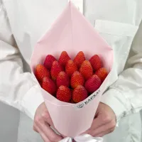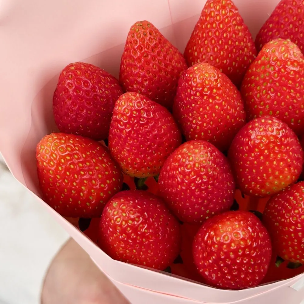 Мы собираем клубничные букеты по весу, а не по штукам. Количество, форма и размер ягод могут отличаться — ведь каждая ягода уникальна.