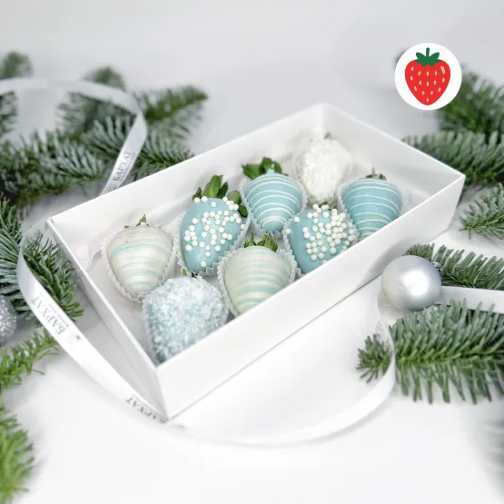 Коробочка свежей клубники в фирменном шоколаде. В основе — сочные и сладкие ягоды отборной клубники Альбион, каждая из которых вручную окутана бархатистым фирменным шоколадом и украшена посыпками.