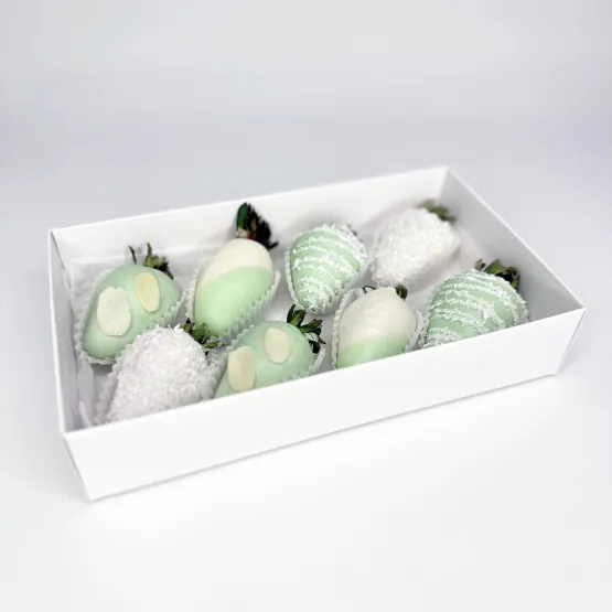 Мы собираем клубничные букеты по весу, а не по штукам. Количество, форма и размер ягод могут отличаться — ведь каждая ягода уникальна.