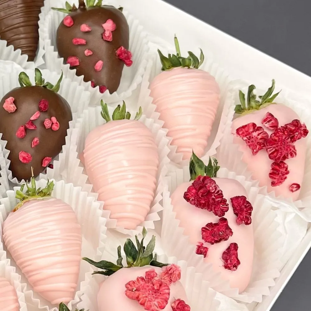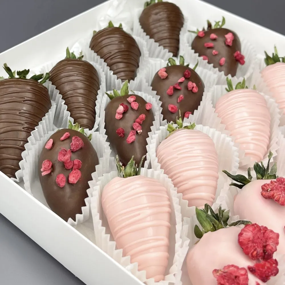 Мы собираем клубничные букеты по весу, а не по штукам. Количество, форма и размер ягод могут отличаться — ведь каждая ягода уникальна.