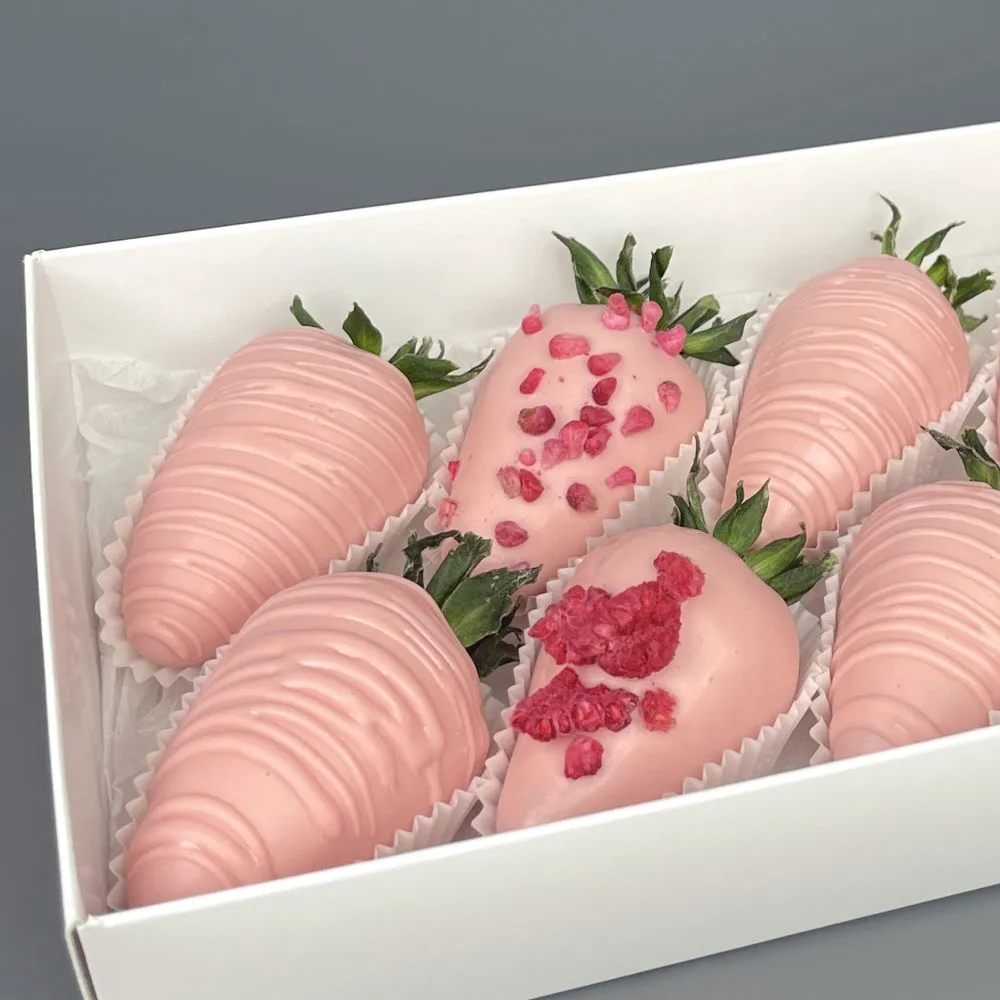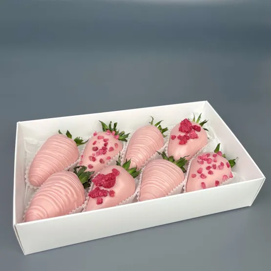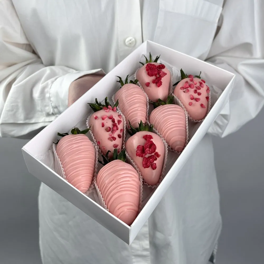 Мы собираем клубничные букеты по весу, а не по штукам. Количество, форма и размер ягод могут отличаться — ведь каждая ягода уникальна.
