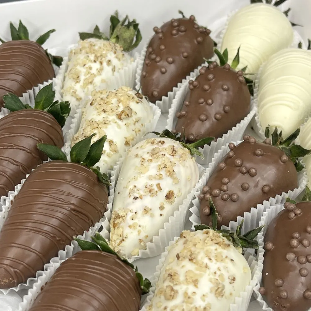 Мы собираем клубничные букеты по весу, а не по штукам. Количество, форма и размер ягод могут отличаться — ведь каждая ягода уникальна.