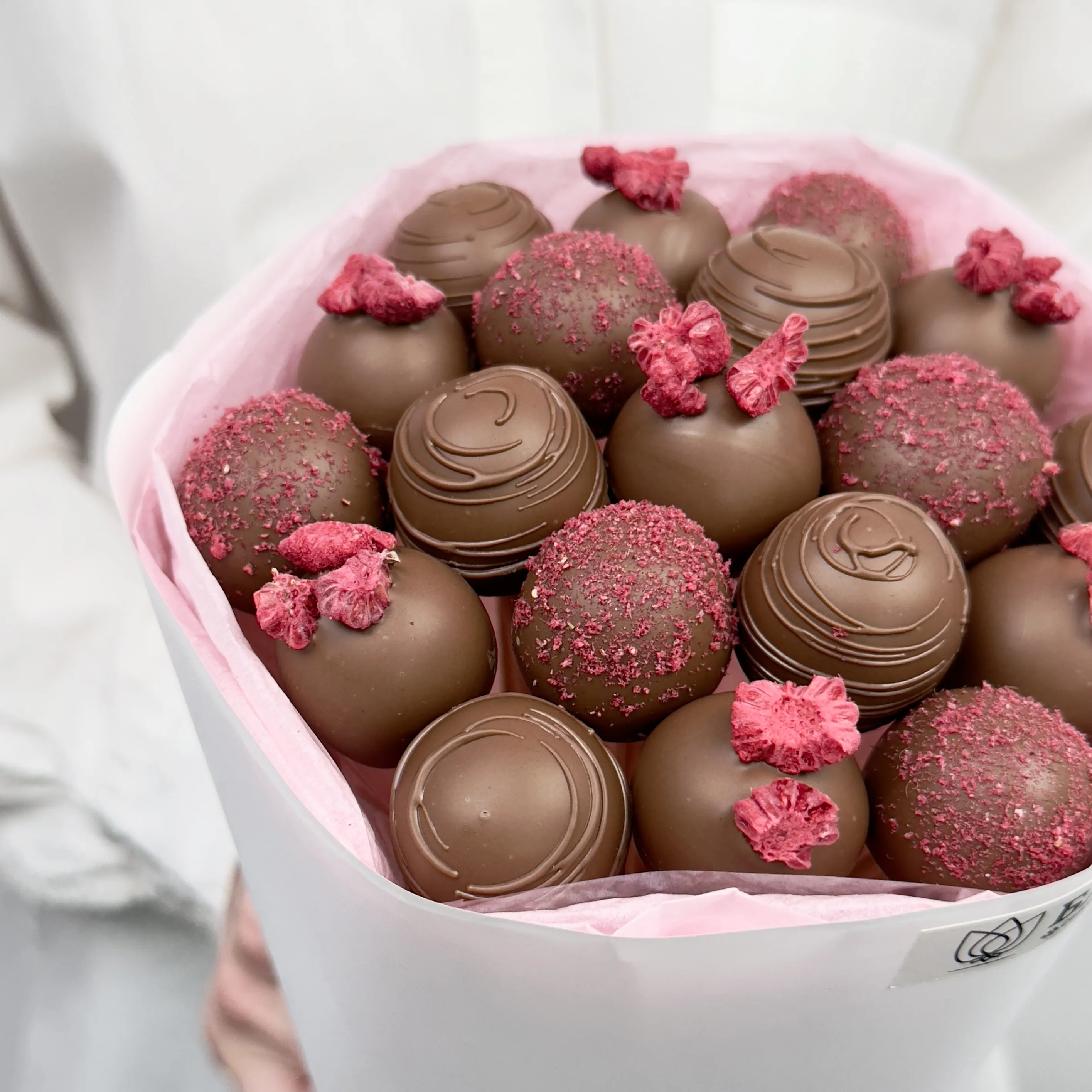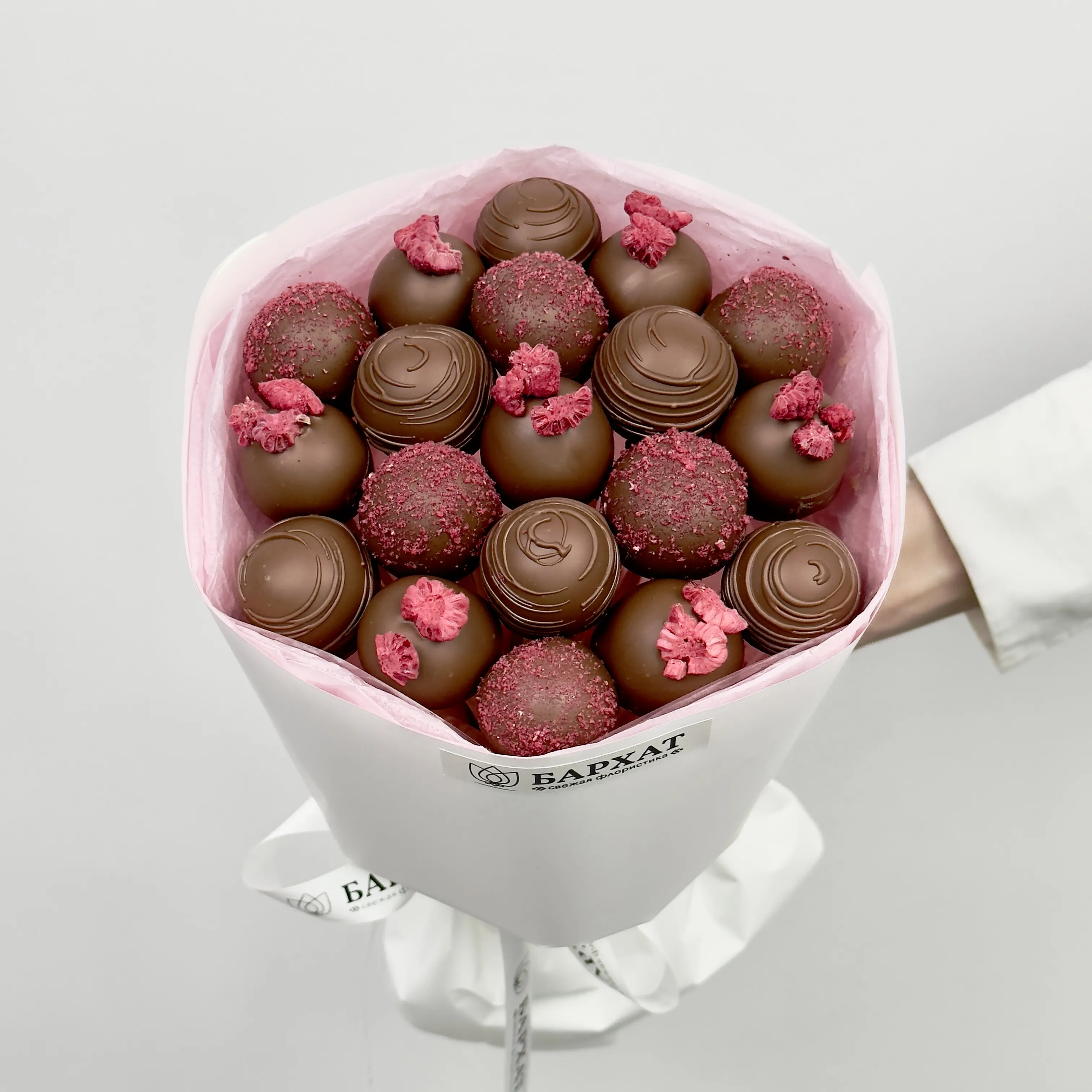 Мы собираем клубничные букеты по весу, а не по штукам. Количество, форма и размер ягод могут отличаться — ведь каждая ягода уникальна.