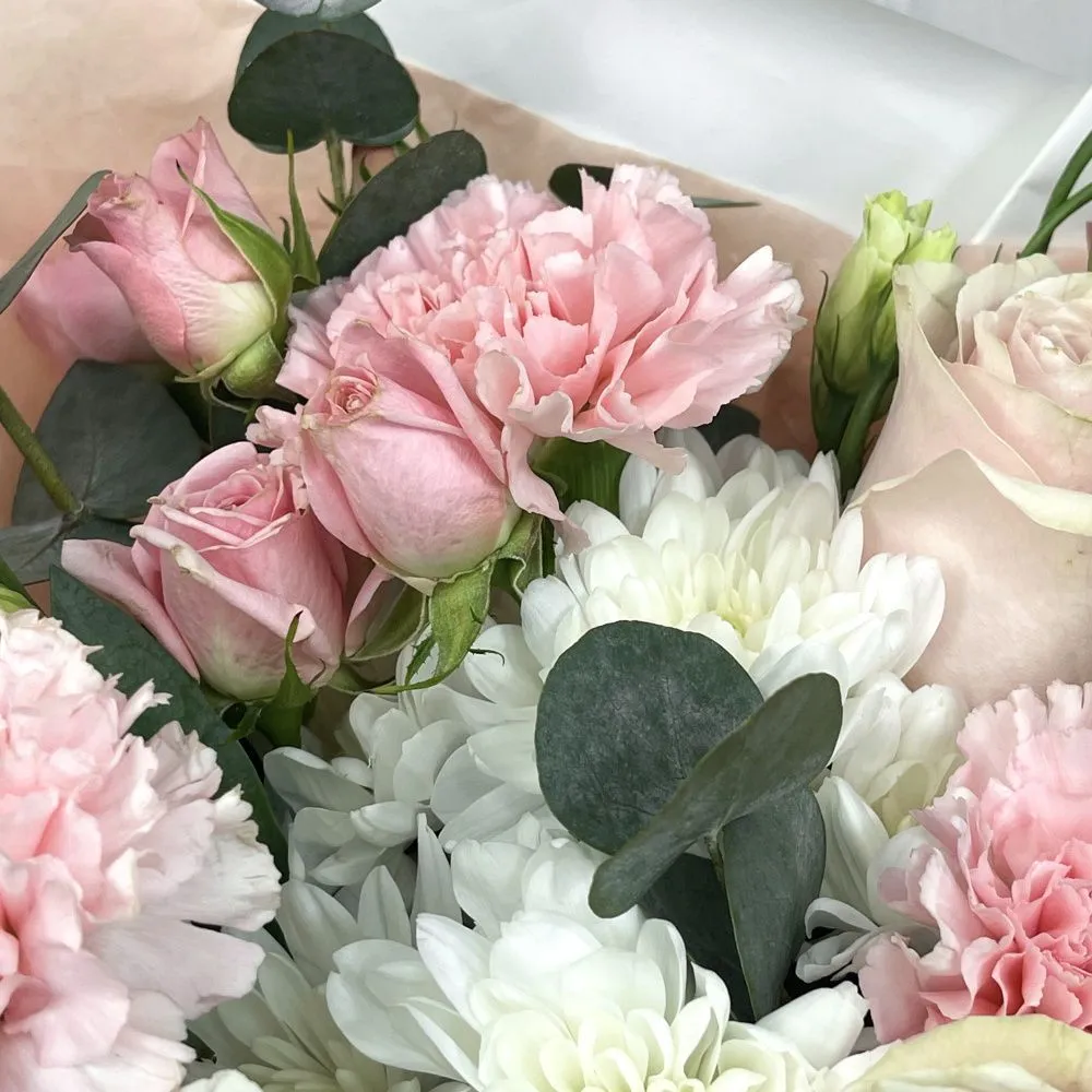 Мы стараемся собрать букет максимально похожим на фото. Возможны небольшие отличия в оттенках.