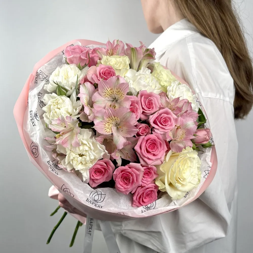 Мы стараемся собрать букет максимально похожим на фото. Возможны небольшие отличия в оттенках.