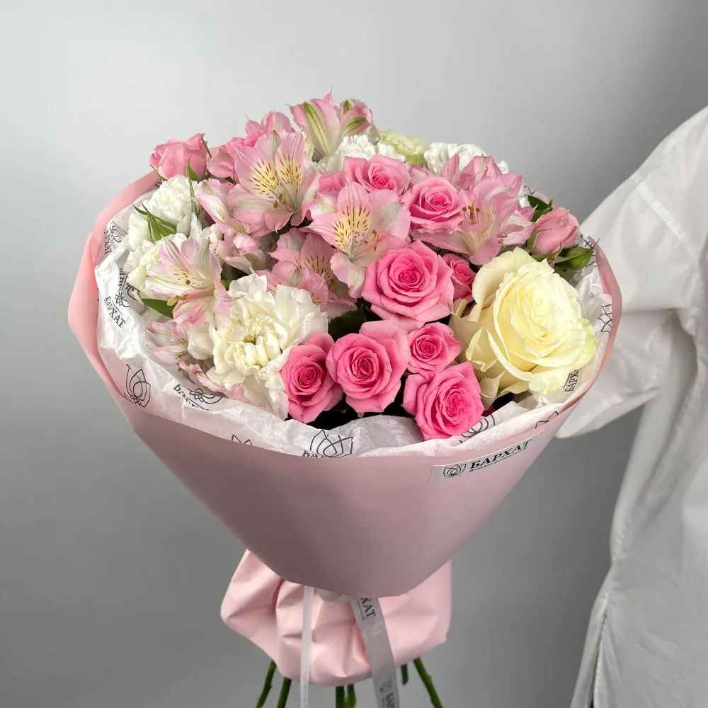 Сорт и оттенок могут незначительно отличаться — если нужных цветов не будет, флорист подберет подходящую замену.