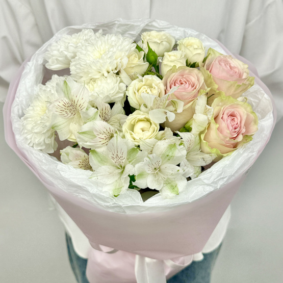 Мы стараемся собрать букет максимально похожим на фото. Возможны небольшие отличия в оттенках.