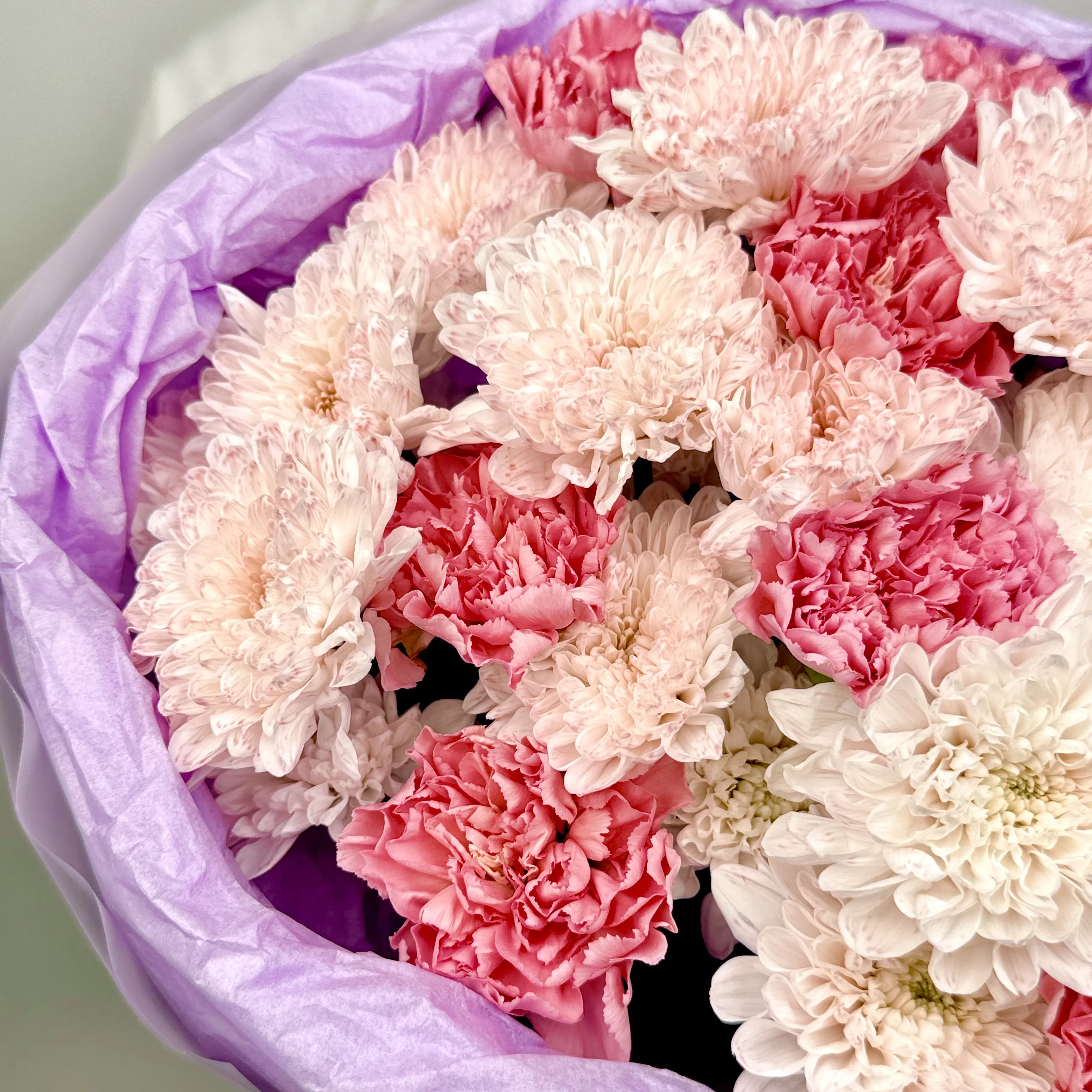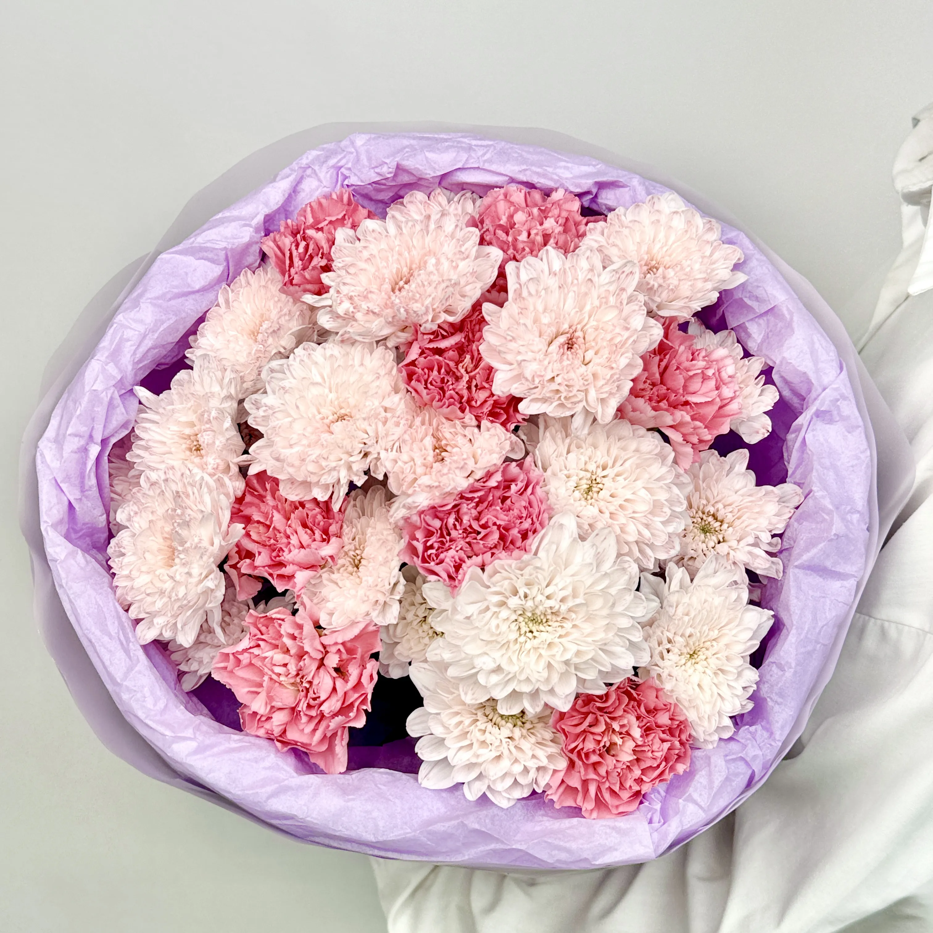Мы стараемся собрать букет максимально похожим на фото. Возможны небольшие отличия в оттенках.