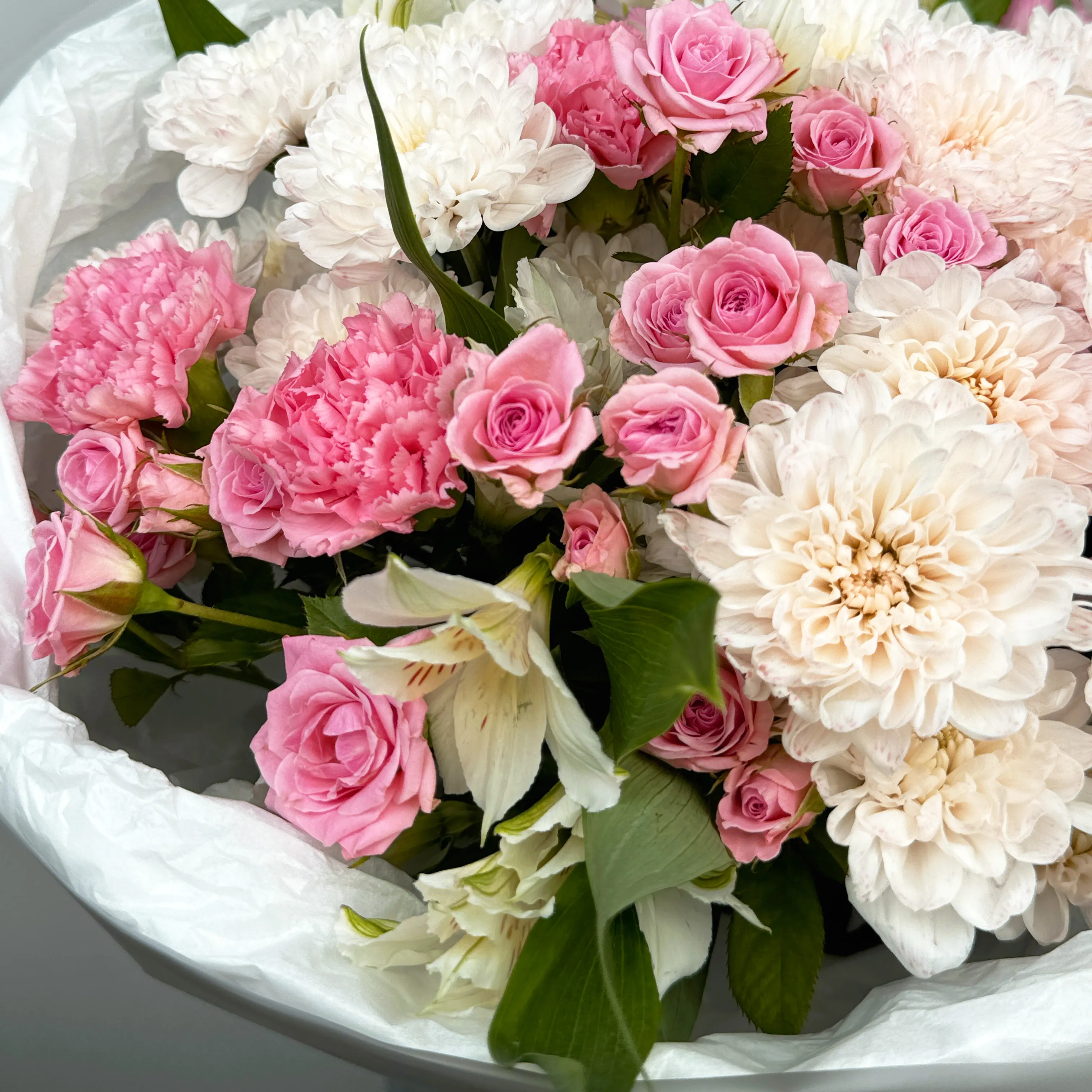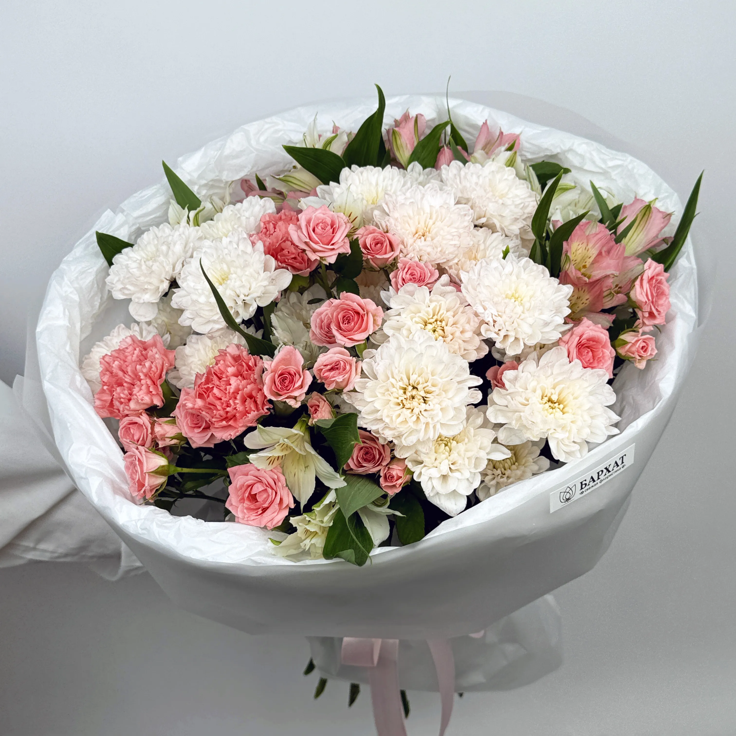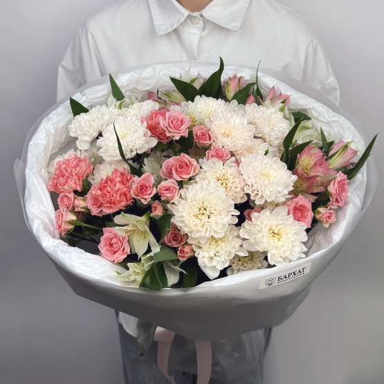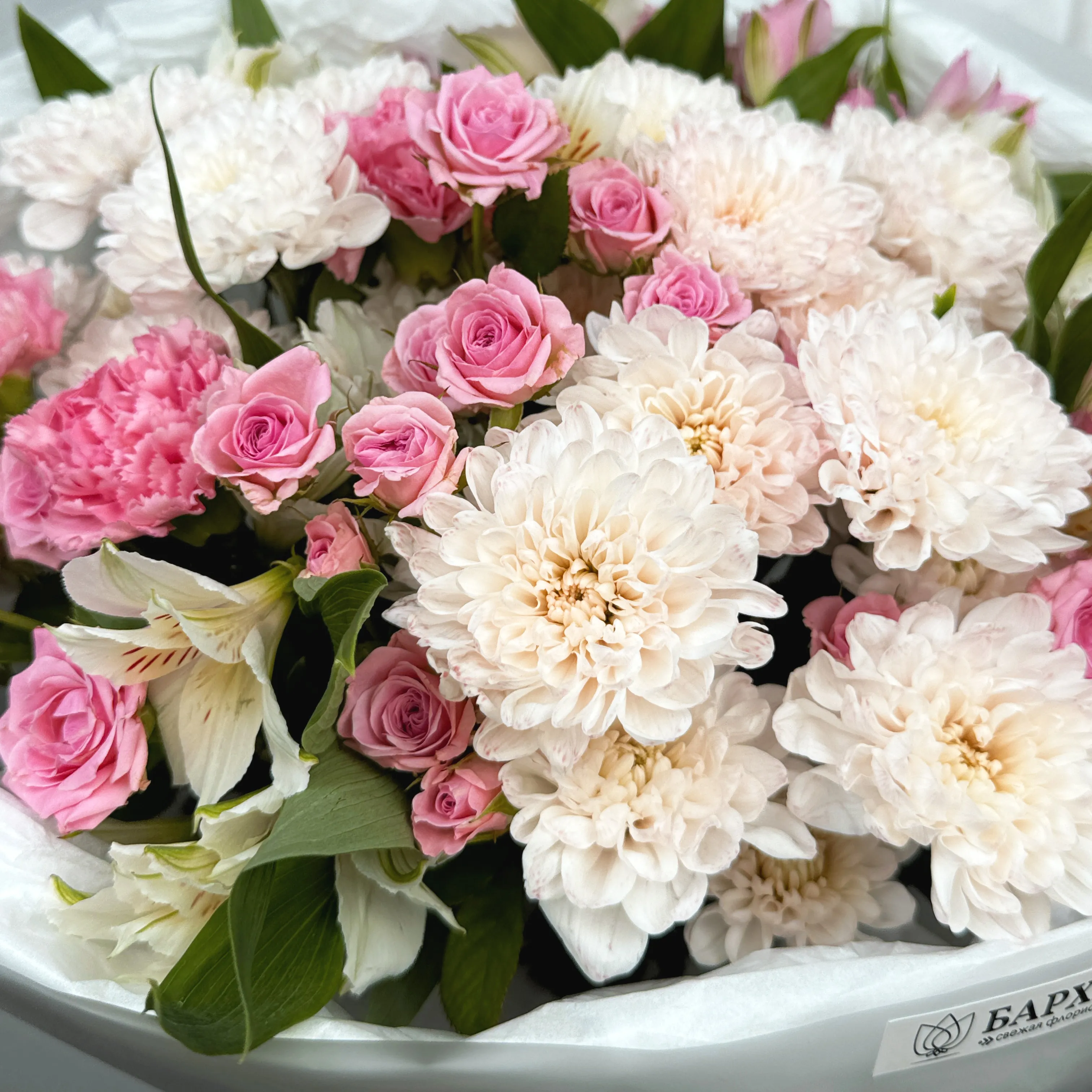 Букет из свежих цветов — идеальный способ выразить чувства: ко дню рождения, годовщине, 8 Марта, 14 Февраля, Дню матери, Дню учителя, Дню бабушки и дедушки или просто в знак внимания и заботы. Фирменная открытка-инструкция по хранению — в подарок. Цветочный букет — отличный подарок бабушке, маме, любимой женщине, жене, подруге, сестре, друзьям и коллеге.