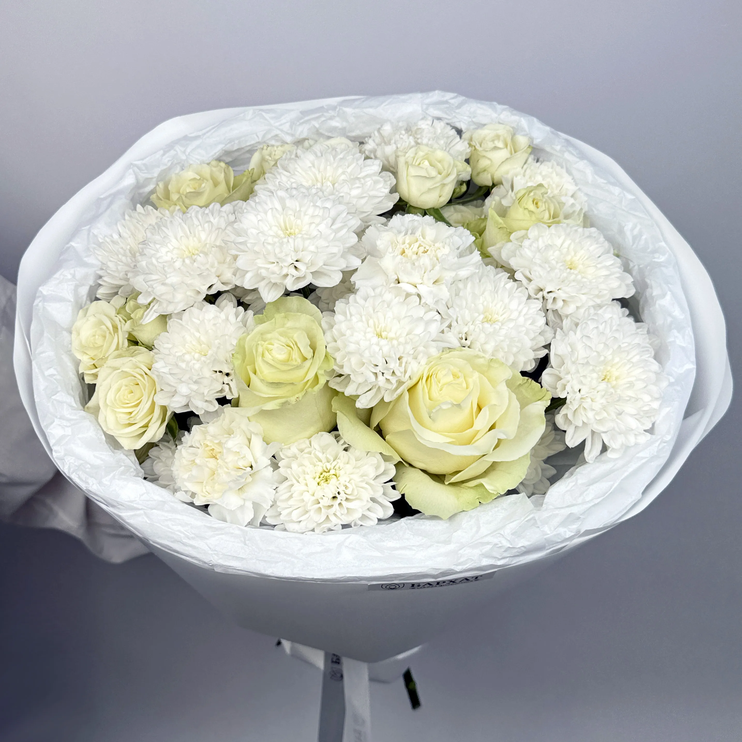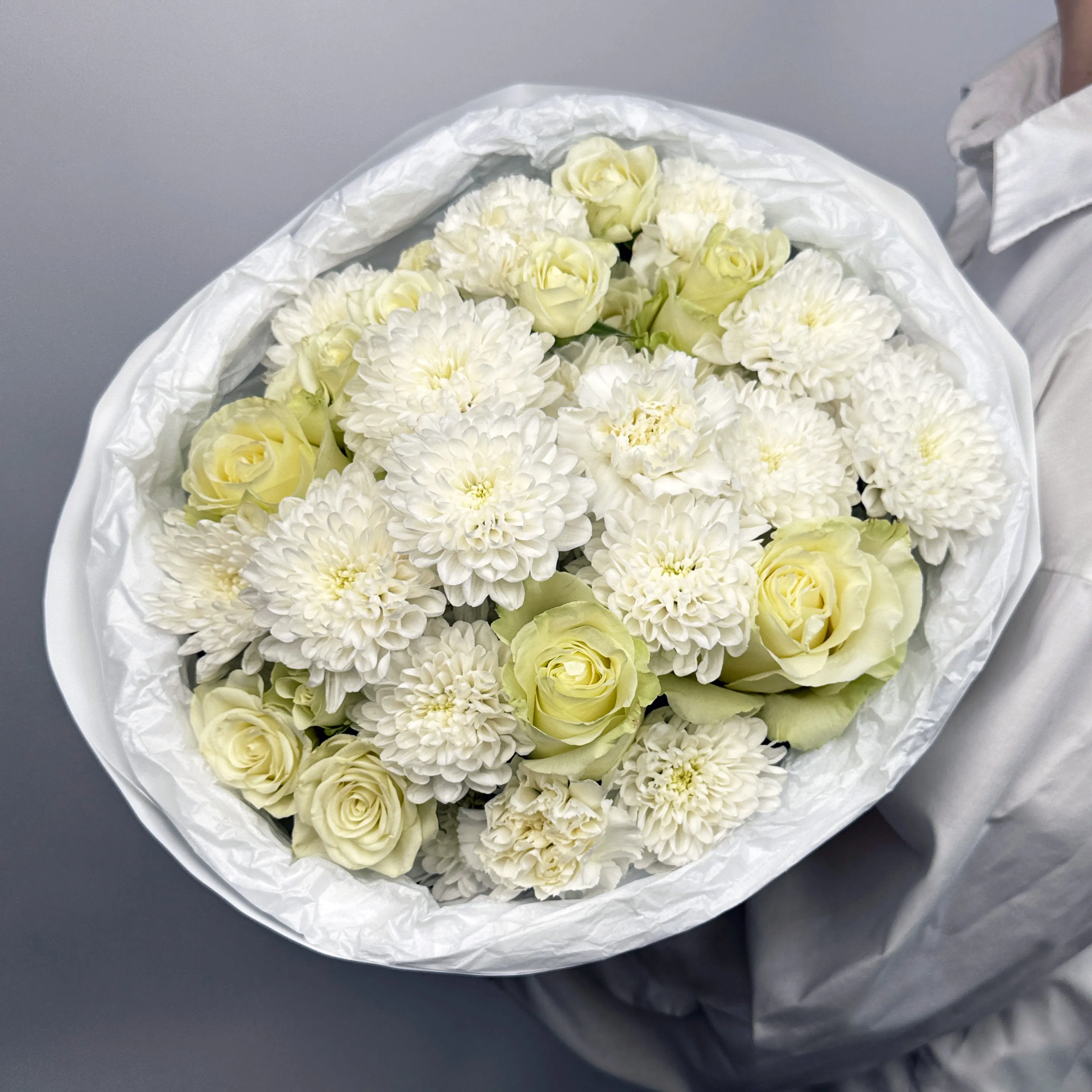 Мы стараемся собрать букет максимально похожим на фото. Возможны небольшие отличия в оттенках.