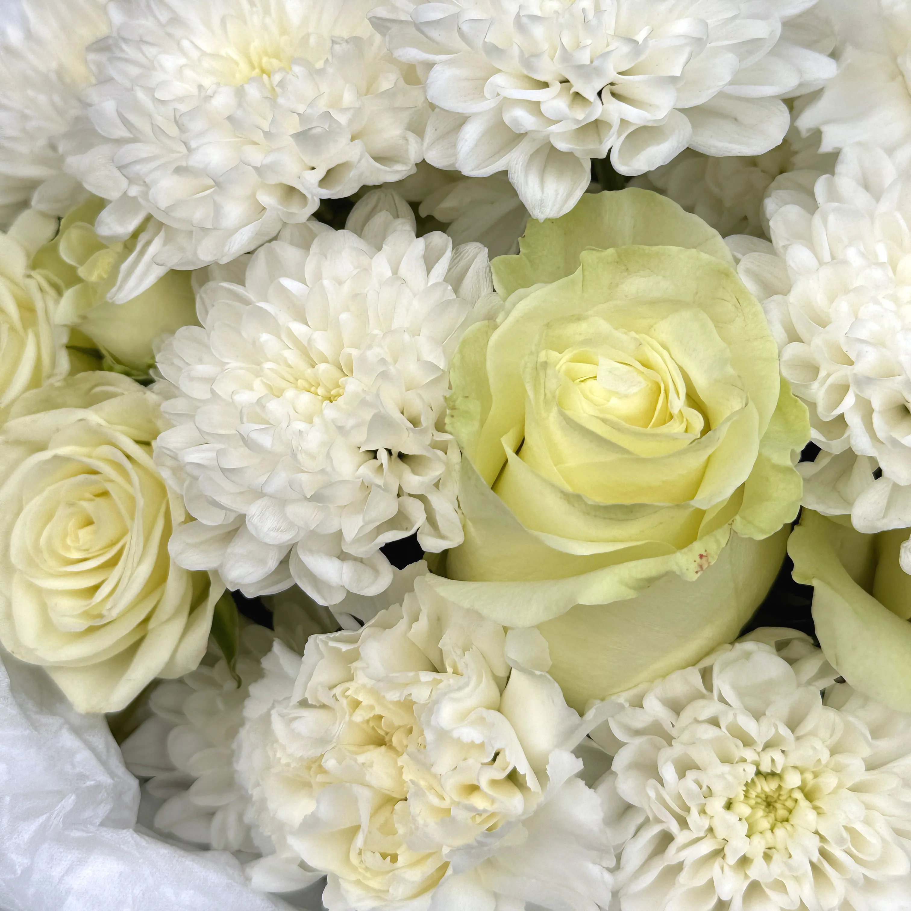 Сорт и оттенок могут незначительно отличаться — если нужных цветов не будет, флорист подберет подходящую замену.