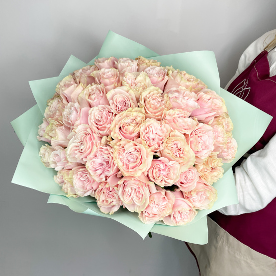 Букет из 51 розовой розы в бирюзовой упаковке