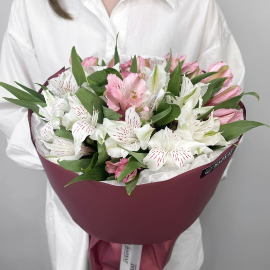 *Обратите внимание: изображение в карточке товара носит иллюстративный характер — реальный букет может незначительно отличаться от фото (например, по оттенкам цветов, форме и сборке). Точные размеры букета указаны в карточке товара.