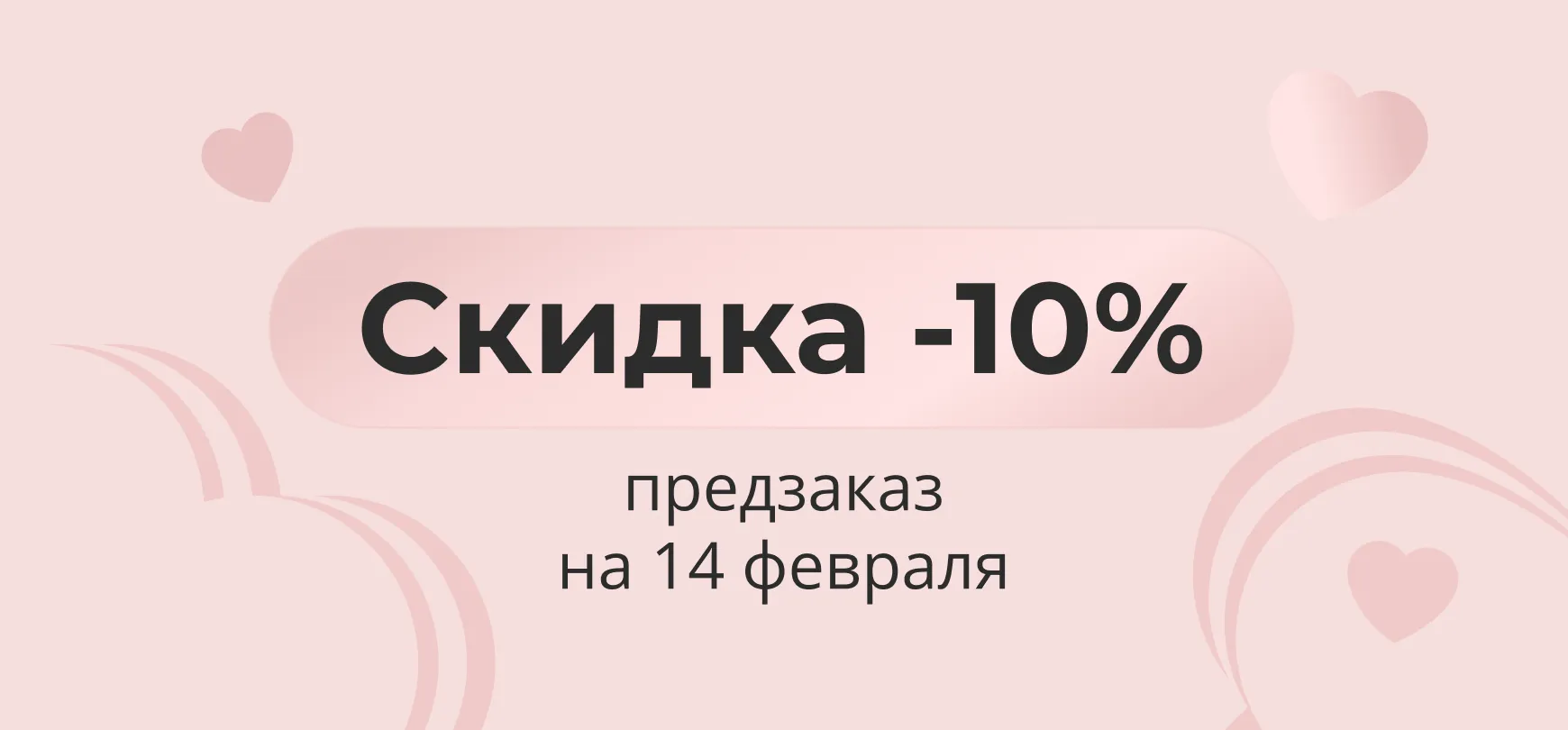 🎁 Скидка 10% действует только на товары из каталога Подарки на 14 февраля при оформлении предварительного заказа на даты: